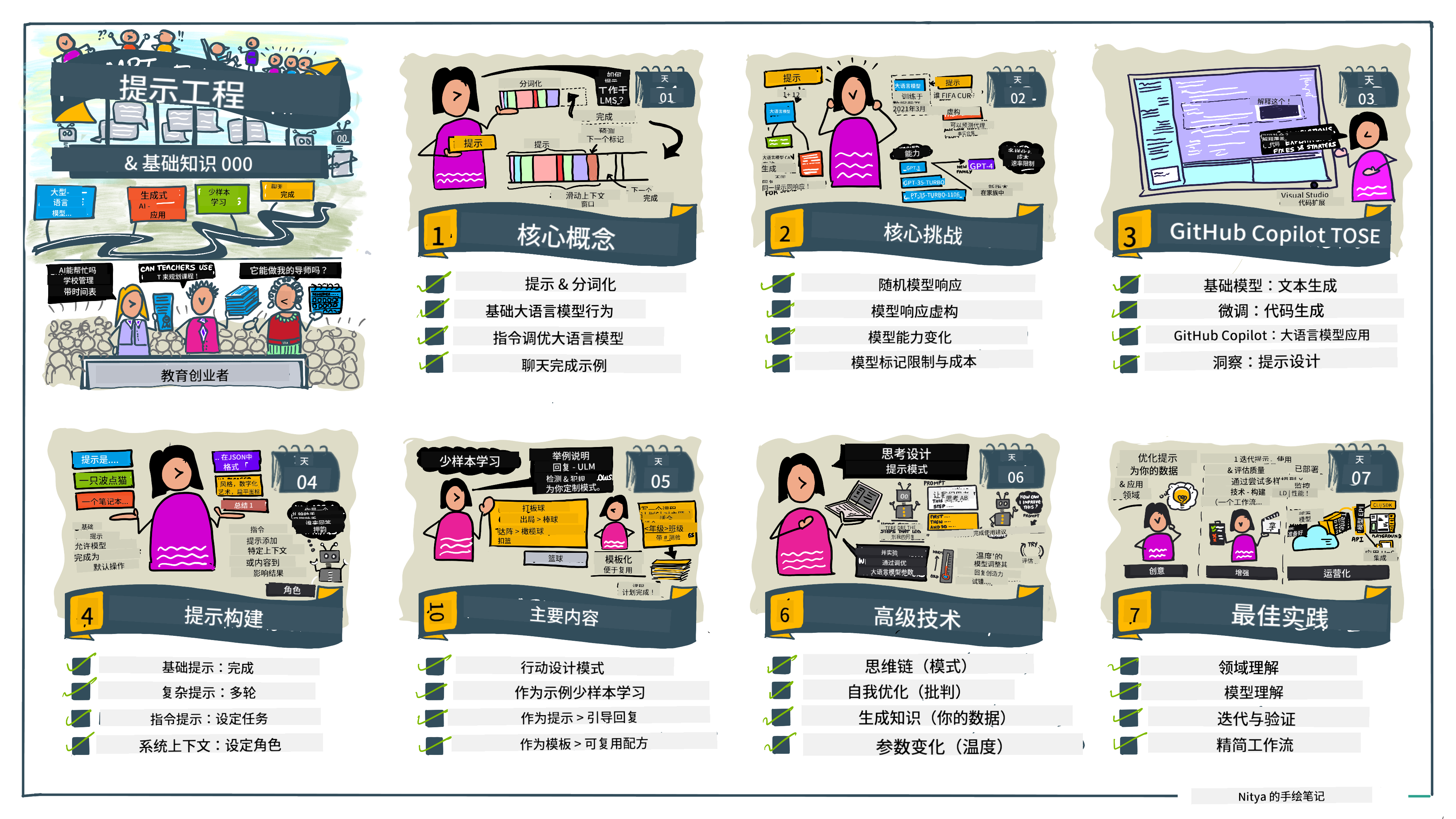 - 提示工程:设计并优化输入内容,引导AI生成目标输出的实践