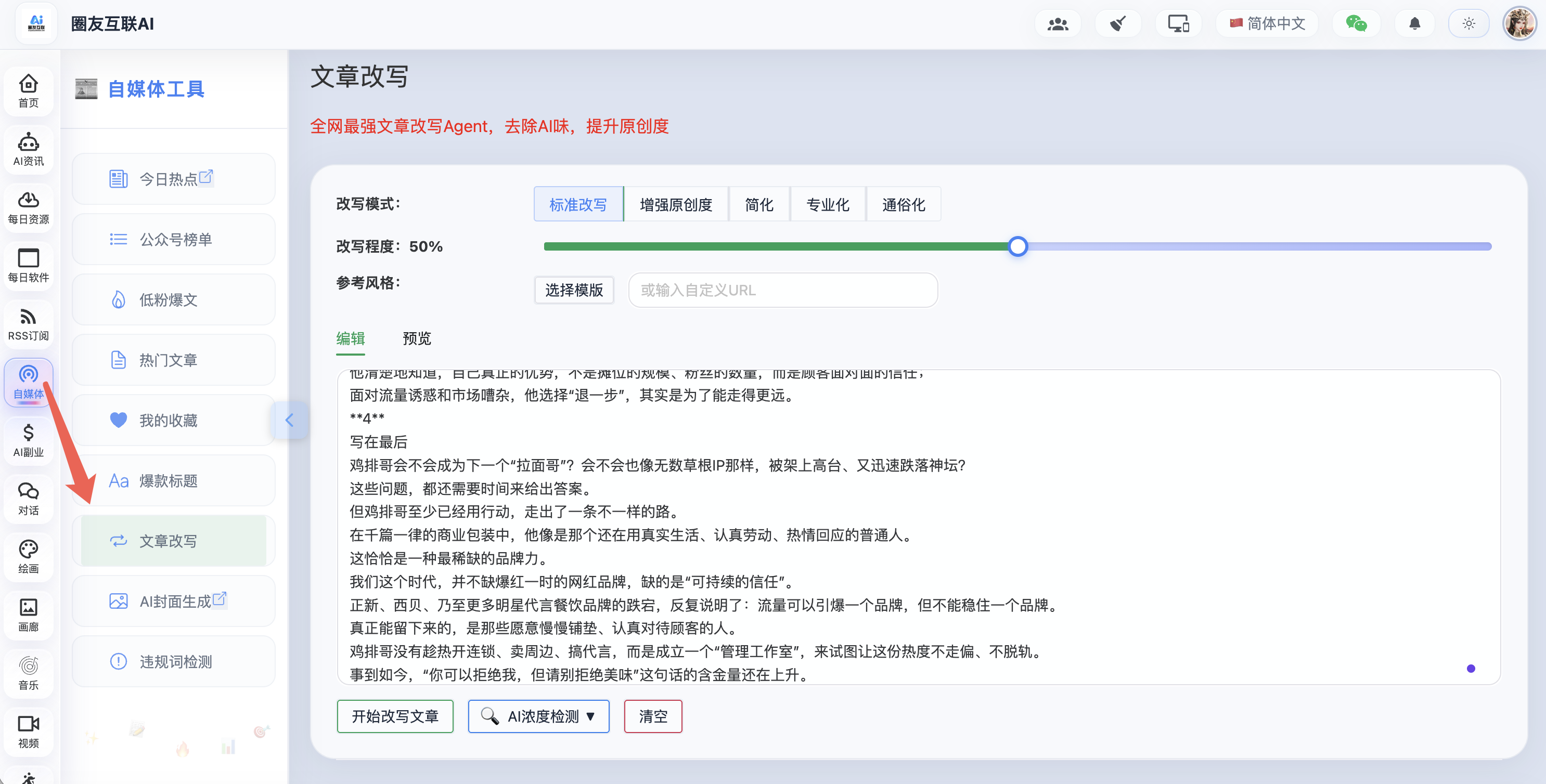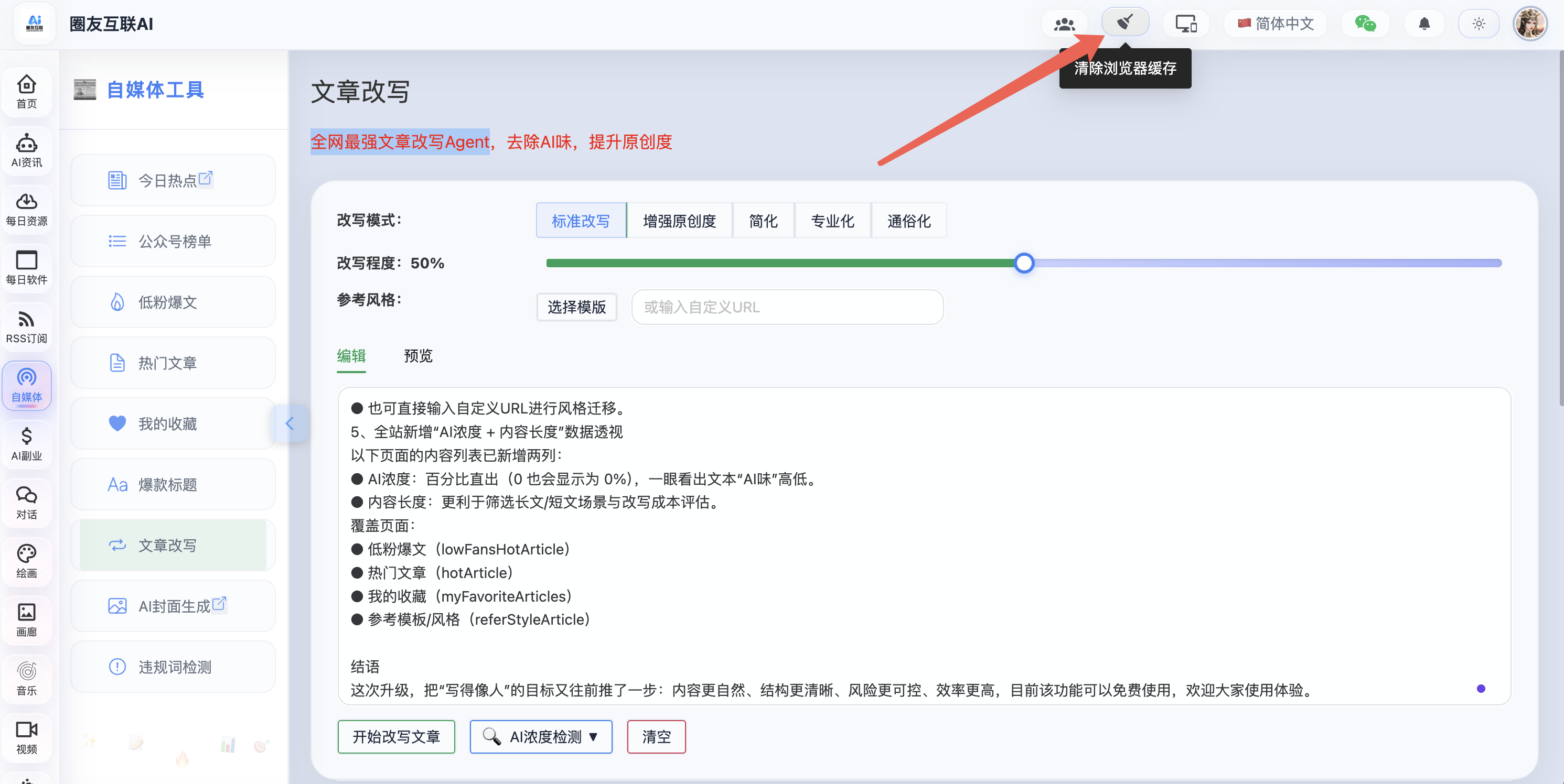 工具地址:https://ai.quanyouhulian.com/#/media/article-rewrite
