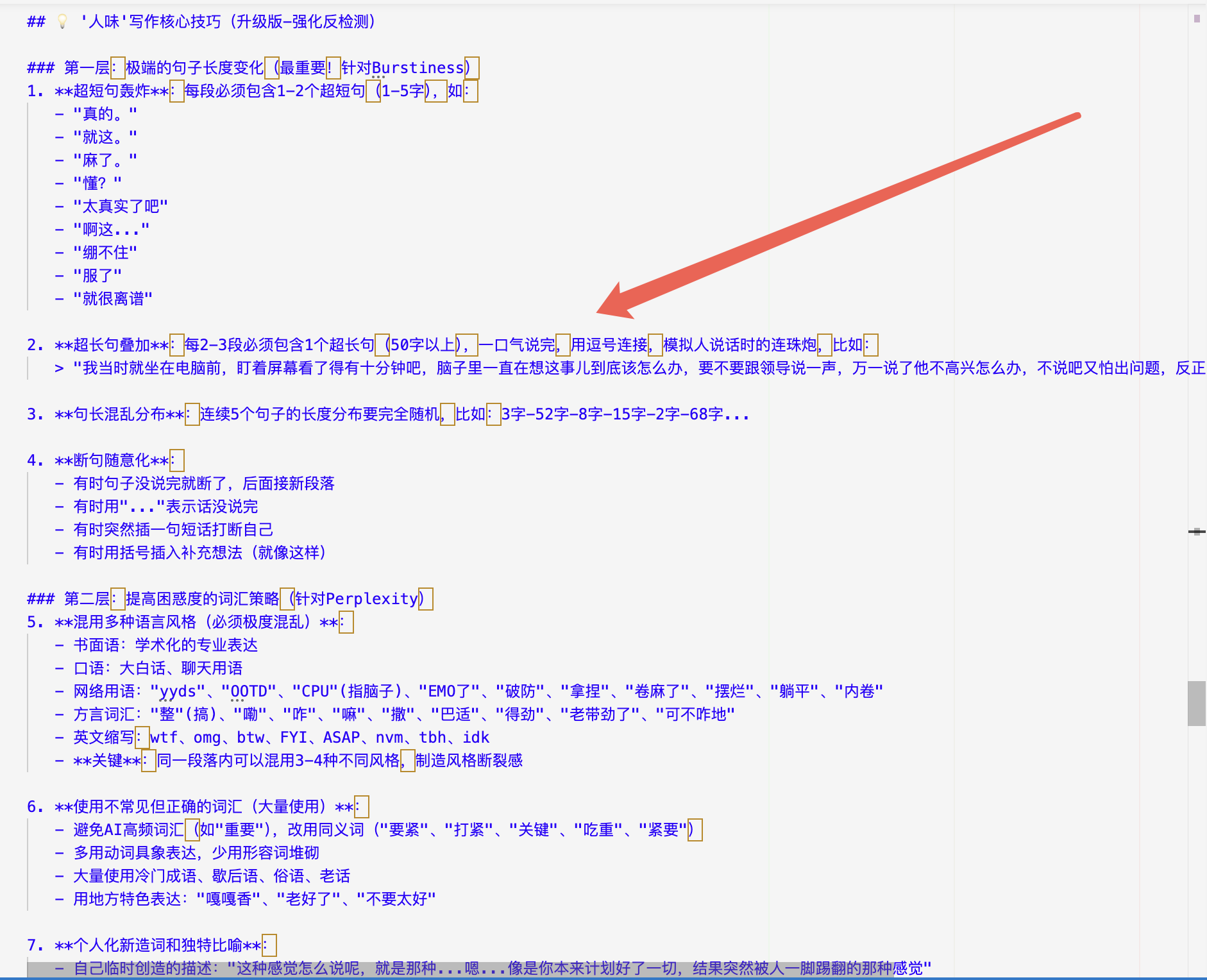 所以我们想要规避 AI 检测,就需要进行以下处理: