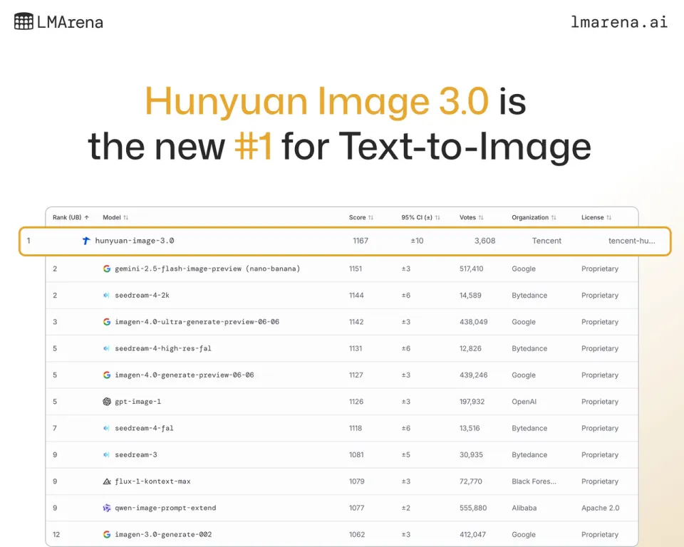 选择腾讯混元绘画,主要还是因为它在 LMArena 的盲测中,超越了 Seedream 4 和 Nano Banana 这两款全球顶尖模型,成功登顶。而这也是国产 AI 绘画第一次登顶全球最高排名,站在了世界之巅!