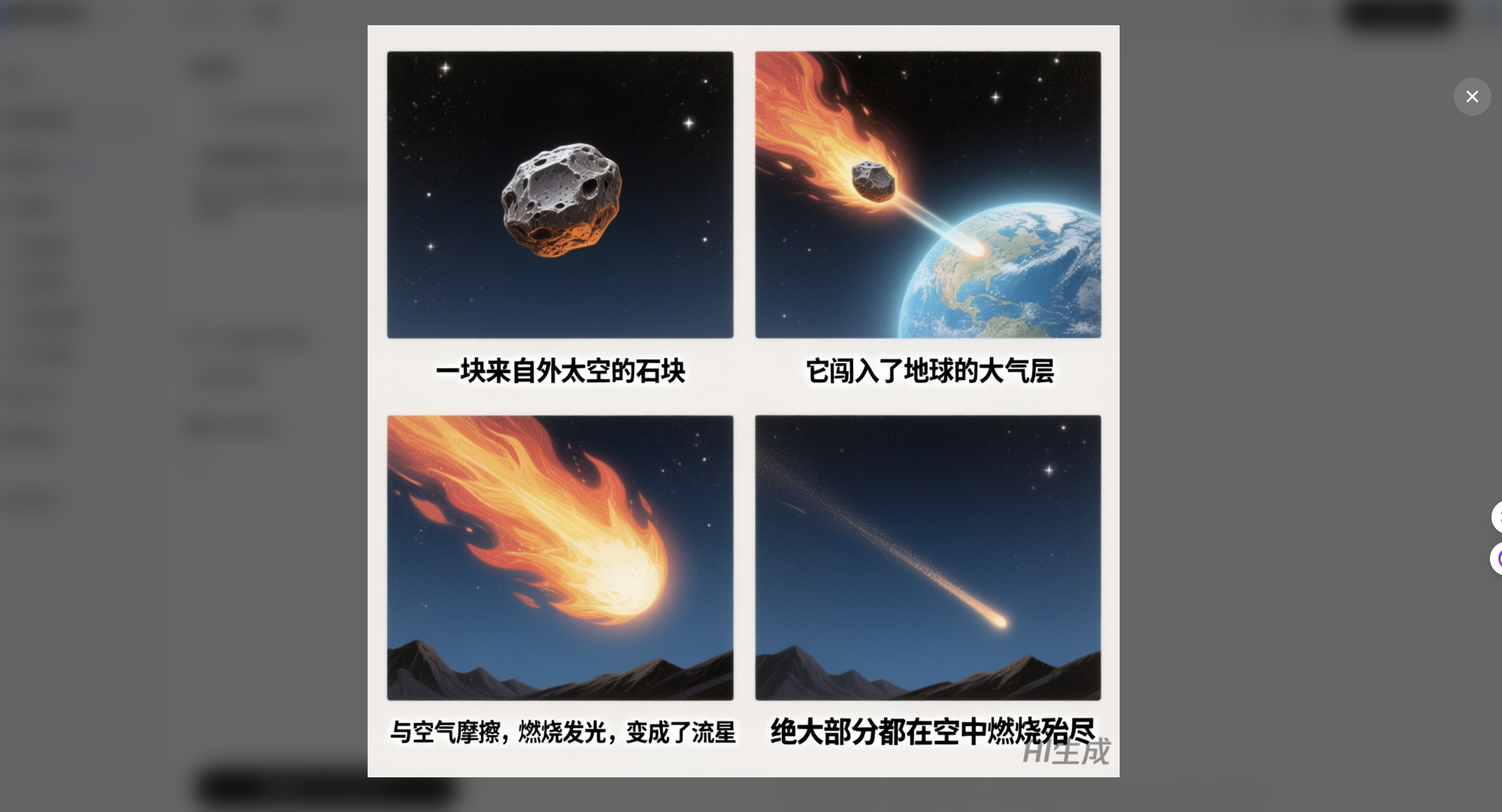 比如我让它画“使用四宫格漫画展示流星形成过程,并配上文字说明”,直接给我来了个四宫格漫画,每个步骤都清清楚楚,配上文字说明,简直就是天然的课件素材好吧!