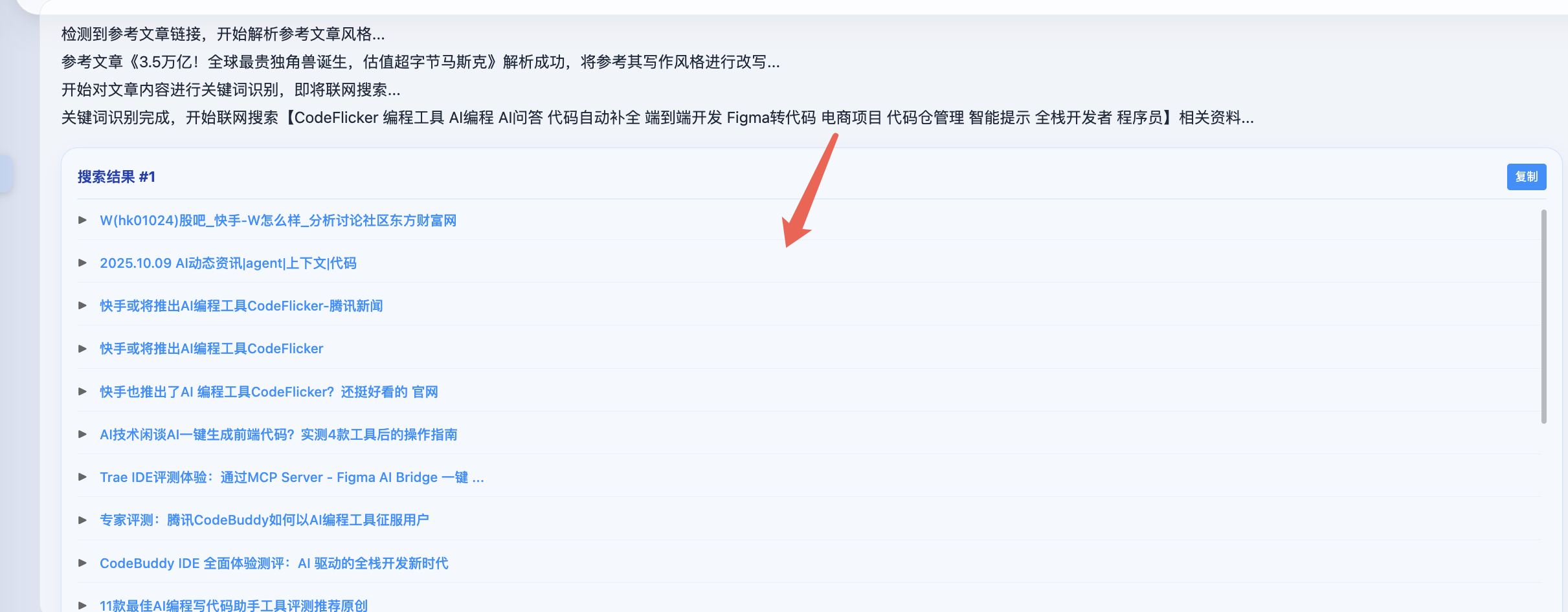 - 首先 Agent 会自动搜索相关文章,取百家之长!